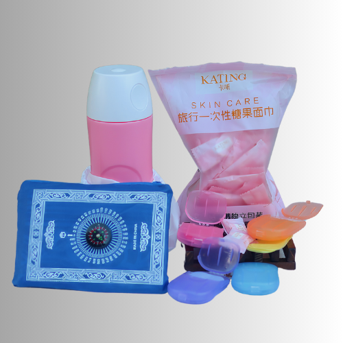 Tired of compromising hygiene on-the-go? Our comprehensive bundle of portable bidet, compressed towels, paper soaps, and pocket prayer mat offers the perfect solution, ensuring cleanliness and convenience wherever you are. Say goodbye to hygiene worries with our all-in-one bundle, providing the essential products you need for a fresh and worry-free experience on-the-go.